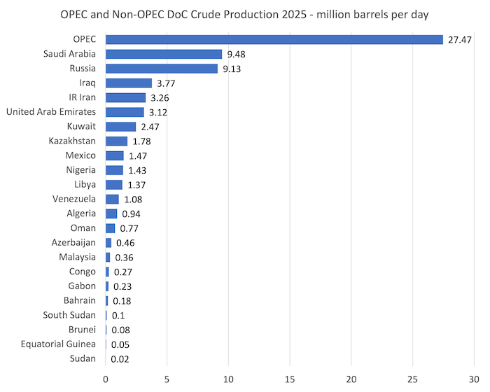 When it comes to manufacturing, the next graph exhibits the OPEC and the Non-OPEC – Declaration of Cooperation – nations (OPEC+) for 2025.